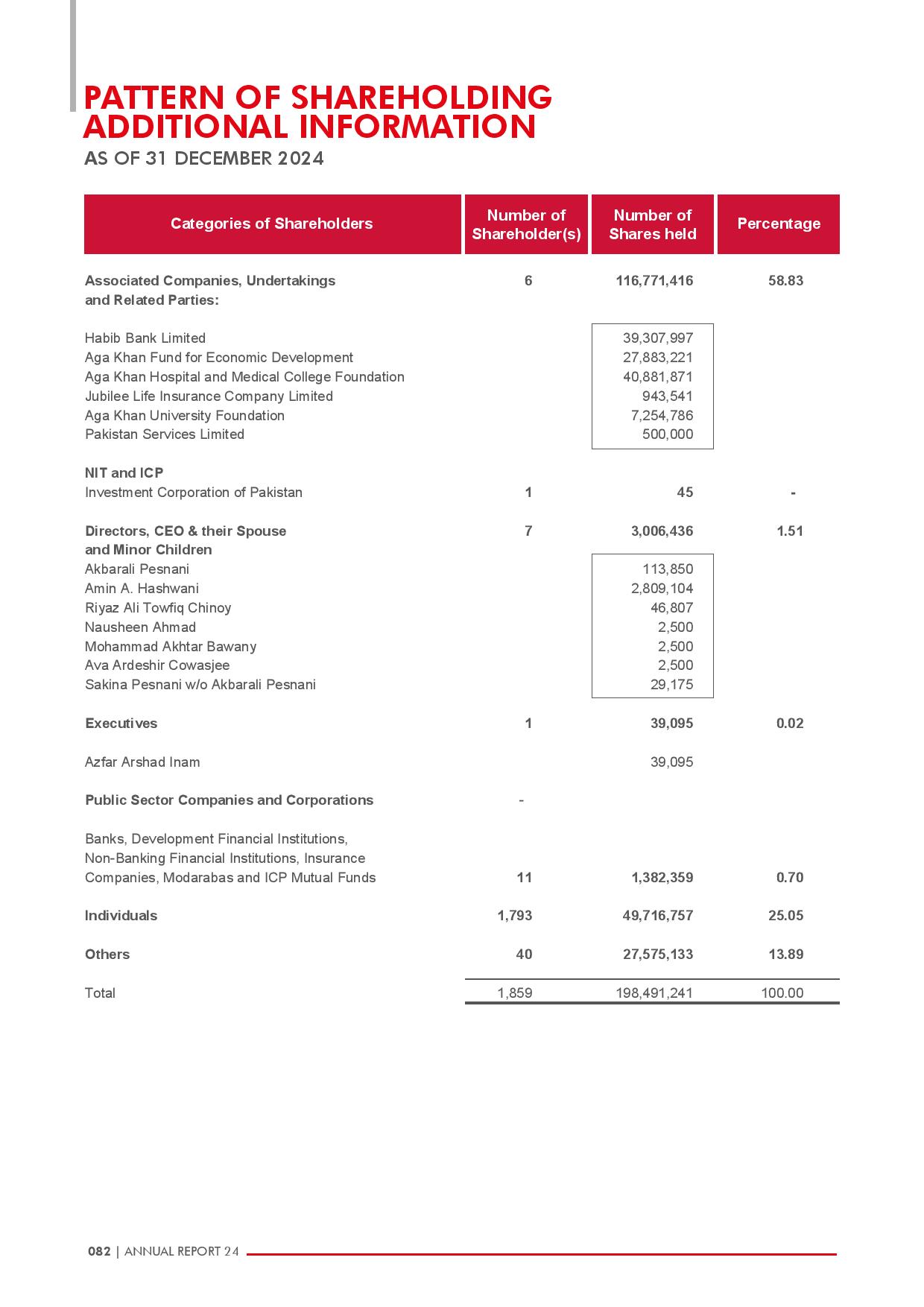 Pattern of Shareholding Pattern of Shareholding Home Pattern of Shareholding Company Overview Vision, Mission & Values Code of Conduct Board of Directors Management Team Pattern of Shareholding Achievement Awards Memberships & Affiliations Corporate Briefing Gender Pay Gap Statement